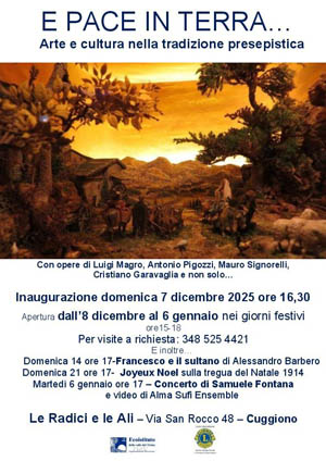 Apertura dall’8 dicembre al 6 gennaio nei giorni festivi alle 15 alle 18